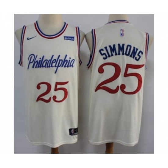Men's Philadelphia 76ers #25 Ben Simmons Swingman Cream Basketball Jersey - 2019 20 City Edition