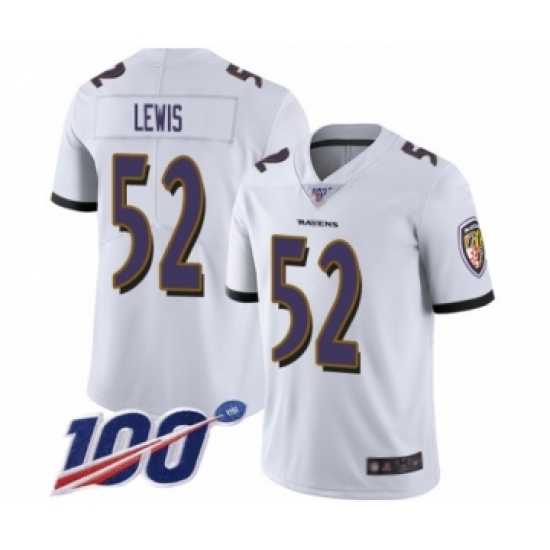 Men's Baltimore Ravens #52 Ray Lewis White Vapor Untouchable Limited Player 100th Season Football Jersey