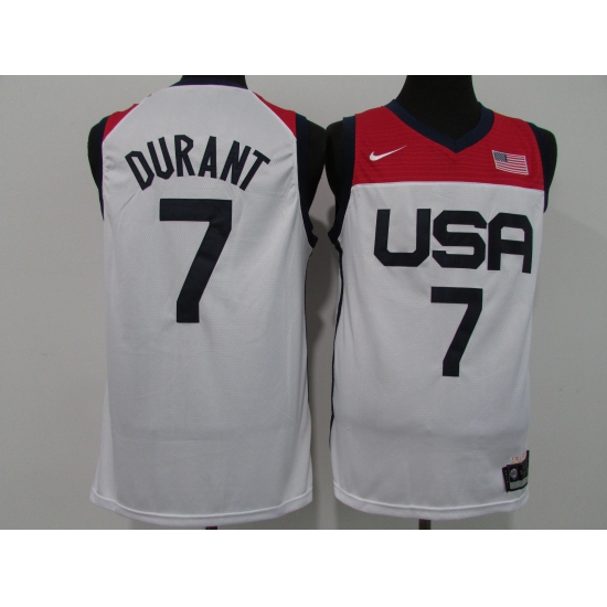 Men's Brooklyn Nets #7 Kevin Durant USA Basketball Tokyo Olympics 2021 White Jersey