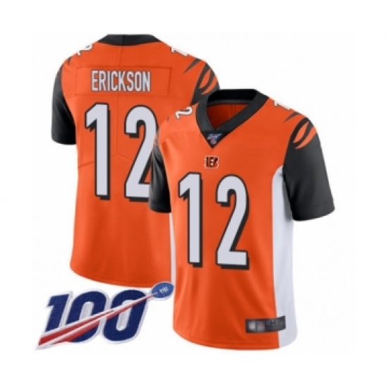 >Men's Cincinnati Bengals #12 Alex Erickson Orange Alternate Vapor Untouchable Limited Player 100th Season Football Jersey