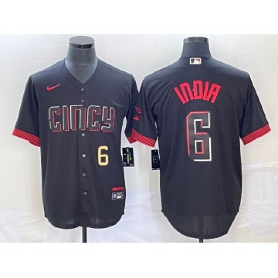 Men's Cincinnati Reds #6 Jonathan India Black 2023 City Connect Stitched Jersey1