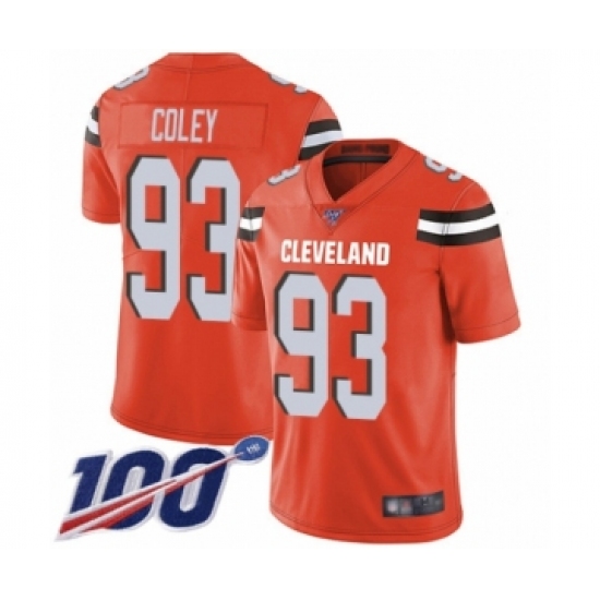 Men's Cleveland Browns #93 Trevon Coley Orange Alternate Vapor Untouchable Limited Player 100th Season Football Jersey