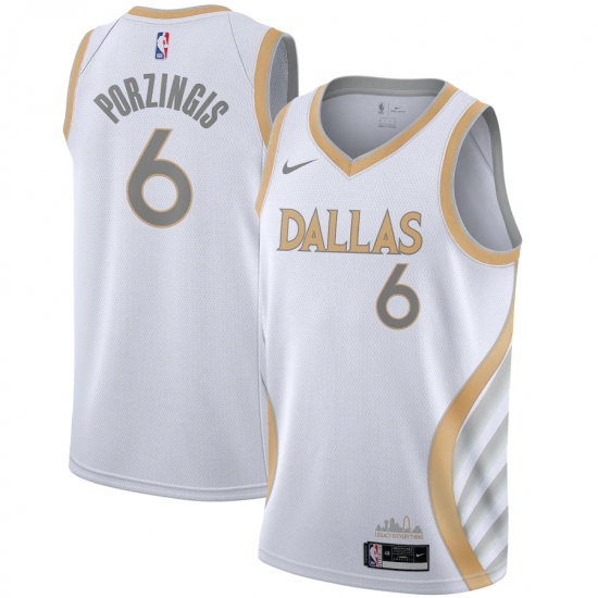 >Men's Dallas Mavericks #6 Kristaps Porzingis Nike White 2020-21 Swingman Player Jersey