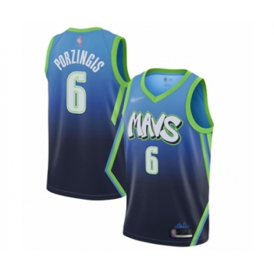 >Men's Dallas Mavericks #6 Kristaps Porzingis Swingman Blue Basketball Jersey - 2019 20 City Edition