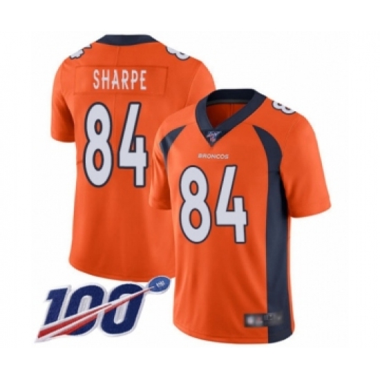 >Men's Denver Broncos #84 Shannon Sharpe Orange Team Color Vapor Untouchable Limited Player 100th Season Football Jersey