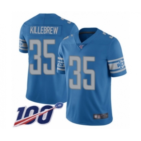 >Men's Detroit Lions #35 Miles Killebrew Blue Team Color Vapor Untouchable Limited Player 100th Season Football Jersey