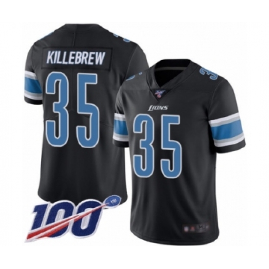 >Men's Detroit Lions #35 Miles Killebrew Limited Black Rush Vapor Untouchable 100th Season Football Jersey