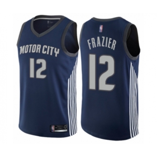 Men's Detroit Pistons #12 Tim Frazier Authentic Navy Blue Basketball Jersey - City Edition