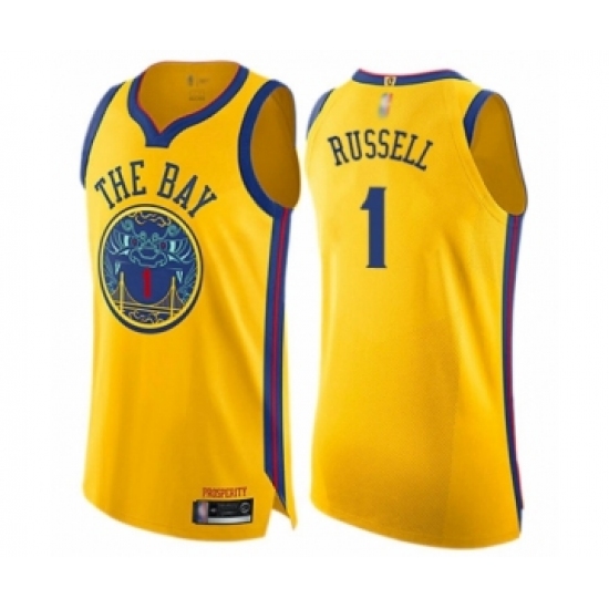 Men's Golden State Warriors #1 D'Angelo Russell Authentic Gold Basketball Jersey - City Edition