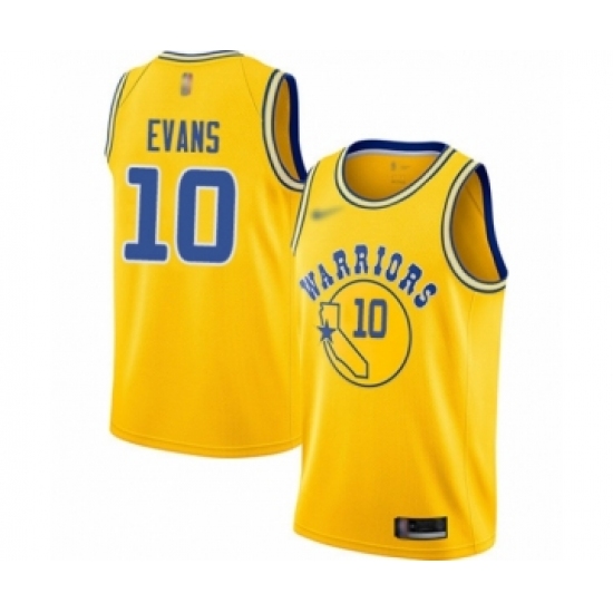 Men's Golden State Warriors #10 Jacob Evans Authentic Gold Hardwood Classics Basketball Jersey