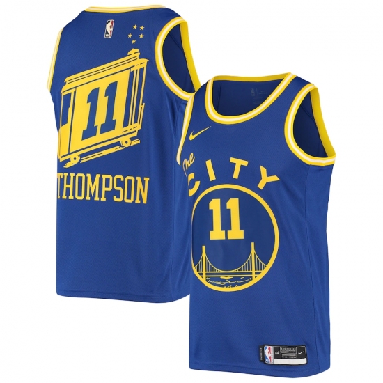 >Men's Golden State Warriors #11 Klay Thompson Nike Royal Hardwood Classics 2020-21 Swingman Jersey