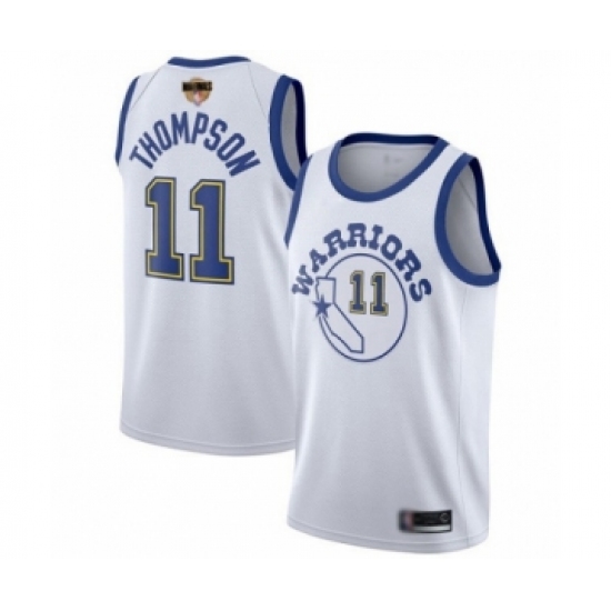 >Men's Golden State Warriors #11 Klay Thompson Swingman White Hardwood Classics 2019 Basketball Finals Bound Basketball Jersey