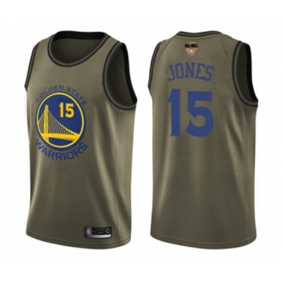 >Men's Golden State Warriors #15 Damian Jones Swingman Green Salute to Service 2019 Basketball Finals Bound Basketball Jersey