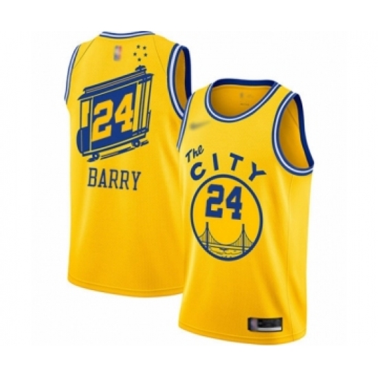 Men's Golden State Warriors #24 Rick Barry Authentic Gold Hardwood Classics Basketball Jersey - The City Classic Edition