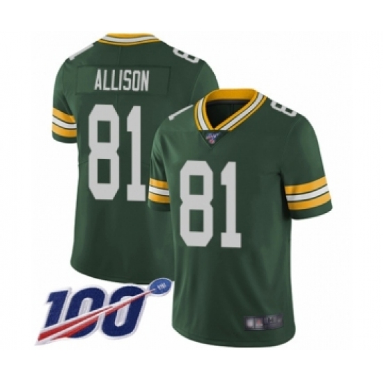 >Men's Green Bay Packers #81 Geronimo Allison Green Team Color Vapor Untouchable Limited Player 100th Season Football Jersey