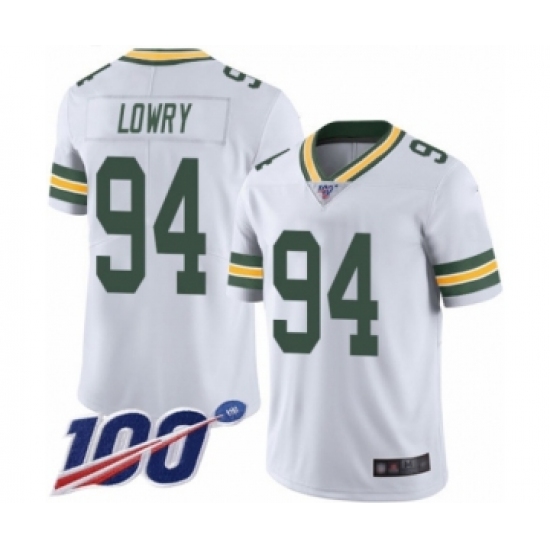 Men's Green Bay Packers #94 Dean Lowry White Vapor Untouchable Limited Player 100th Season Football Jersey