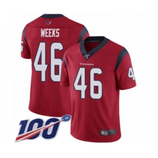 >Men's Houston Texans #46 Jon Weeks Red Alternate Vapor Untouchable Limited Player 100th Season Football Jersey