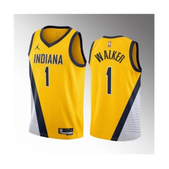 Men's Indiana Pacers #1 Jarace Walker Yellow 2023 Draft Statement Edition Stitched Basketball Jersey