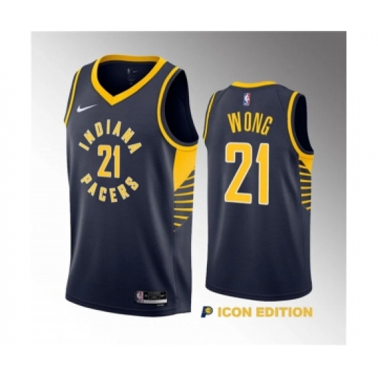 >Men's Indiana Pacers #21 Isaiah Wong Navy 2023 Draft Icon Edition Stitched Basketball Jersey