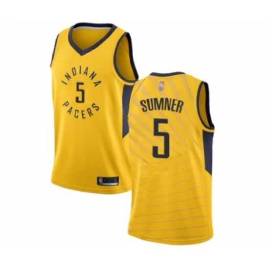 Men's Indiana Pacers #5 Edmond Sumner Authentic Gold Basketball Jersey Statement Edition