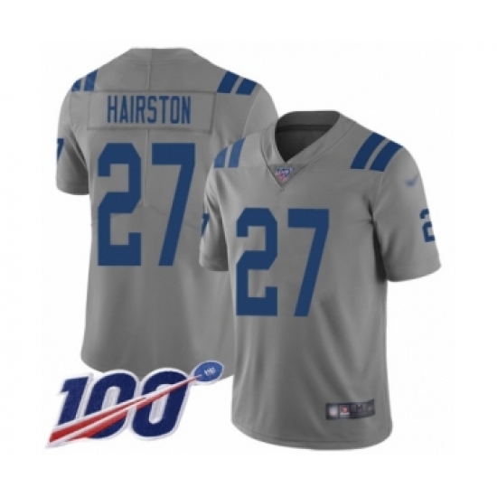 >Men's Indianapolis Colts #27 Nate Hairston Limited Gray Inverted Legend 100th Season Football Jersey