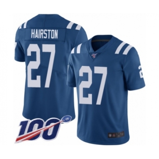 >Men's Indianapolis Colts #27 Nate Hairston Royal Blue Team Color Vapor Untouchable Limited Player 100th Season Football Jersey