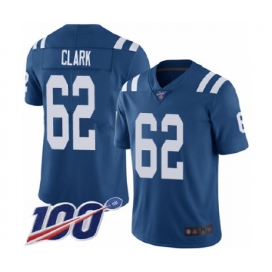 >Men's Indianapolis Colts #62 Le'Raven Clark Royal Blue Team Color Vapor Untouchable Limited Player 100th Season Football Jersey