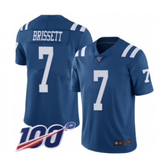 >Men's Indianapolis Colts #7 Jacoby Brissett Limited Royal Blue Rush Vapor Untouchable 100th Season Football Jersey