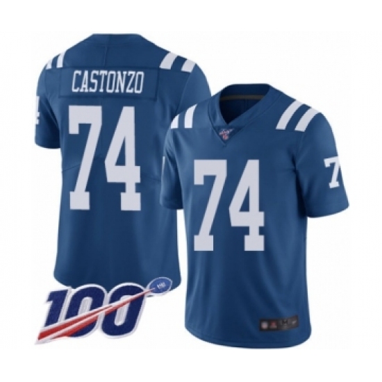 Men's Indianapolis Colts #74 Anthony Castonzo Royal Blue Team Color Vapor Untouchable Limited Player 100th Season Football Jersey