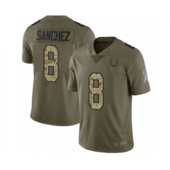 >Men's Indianapolis Colts #8 Rigoberto Sanchez Limited Olive Camo 2017 Salute to Service Football Jersey