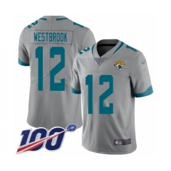 >Men's Jacksonville Jaguars #12 Dede Westbrook Silver Inverted Legend Limited 100th Season Football Jersey
