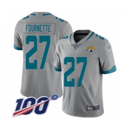 Men's Jacksonville Jaguars #27 Leonard Fournette Silver Inverted Legend Limited 100th Season Football Jersey