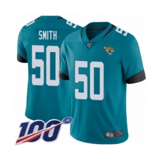 >Men's Jacksonville Jaguars #50 Telvin Smith Teal Green Alternate Vapor Untouchable Limited Player 100th Season Football Jersey