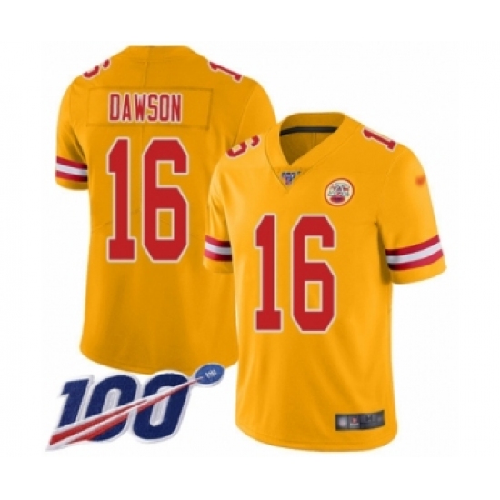 >Men's Kansas City Chiefs #16 Len Dawson Limited Gold Inverted Legend 100th Season Football Jersey