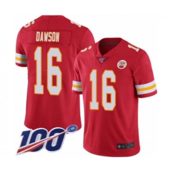 >Men's Kansas City Chiefs #16 Len Dawson Red Team Color Vapor Untouchable Limited Player 100th Season Football Jersey