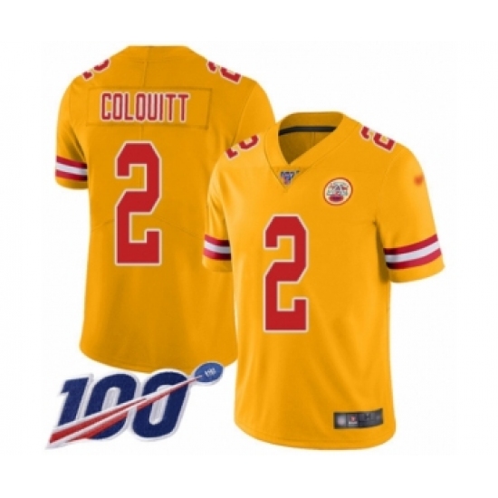 >Men's Kansas City Chiefs #2 Dustin Colquitt Limited Gold Inverted Legend 100th Season Football Jersey