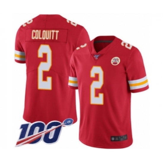 Men's Kansas City Chiefs #2 Dustin Colquitt Red Team Color Vapor Untouchable Limited Player 100th Season Football Jersey