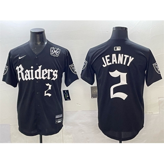 Men's Las Vegas Raiders #2 Ashton Jeanty Black Limited Stitched Baseball Jersey