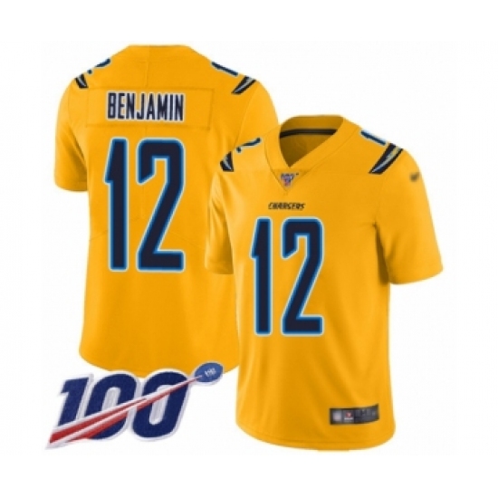 >Men's Los Angeles Chargers #12 Travis Benjamin Limited Gold Inverted Legend 100th Season Football Jersey