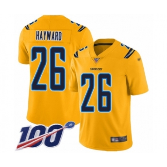 >Men's Los Angeles Chargers #26 Casey Hayward Limited Gold Inverted Legend 100th Season Football Jersey