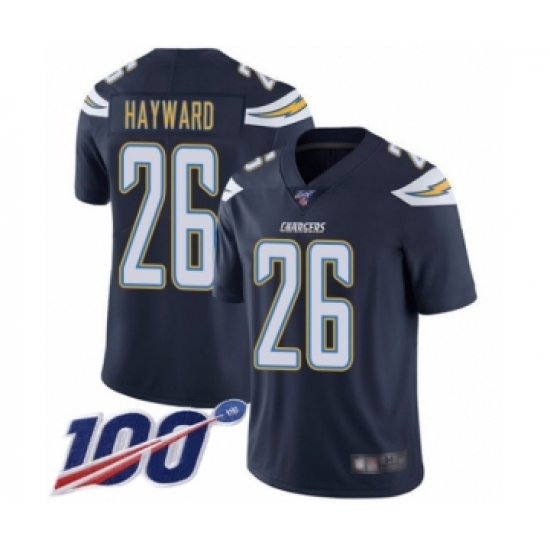 >Men's Los Angeles Chargers #26 Casey Hayward Navy Blue Team Color Vapor Untouchable Limited Player 100th Season Football Jersey
