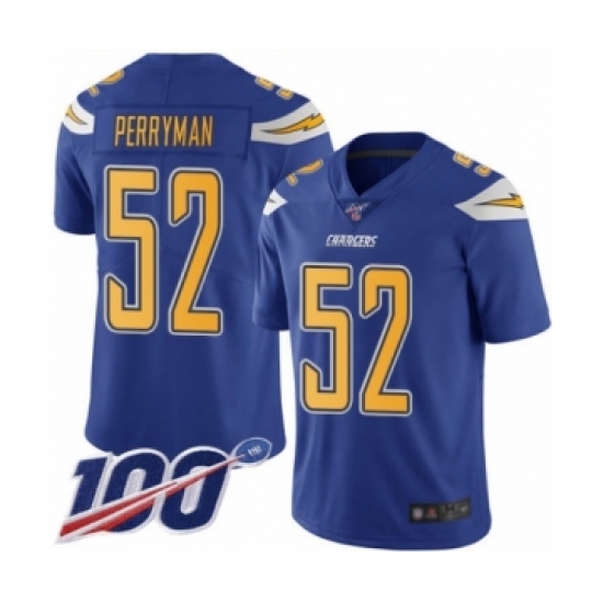 Men's Los Angeles Chargers #52 Denzel Perryman Limited Electric Blue Rush Vapor Untouchable 100th Season Football Jersey