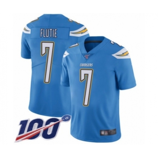 >Men's Los Angeles Chargers #7 Doug Flutie Electric Blue Alternate Vapor Untouchable Limited Player 100th Season Football Jersey