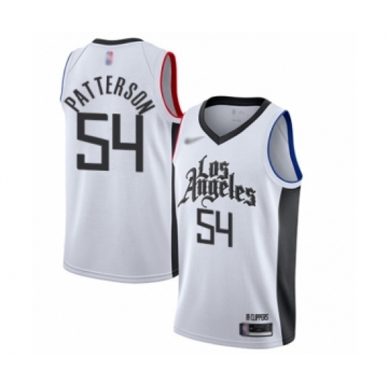 >Men's Los Angeles Clippers #54 Patrick Patterson Swingman White Basketball Jersey - 2019 20 City Edition