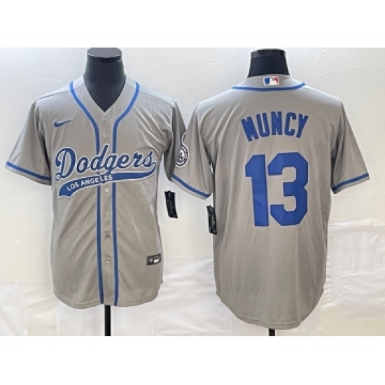 Men's Los Angeles Dodgers #13 Max Muncy Grey Cool Base Stitched Baseball Jersey