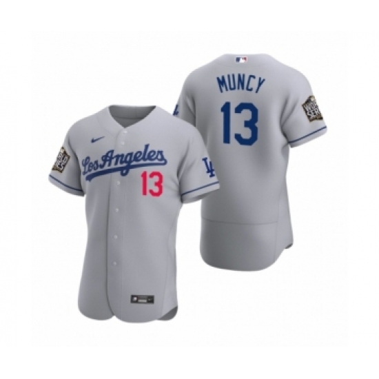 Men's Los Angeles Dodgers #13 Max Muncy Nike Gray 2020 World Series Authentic Road Jersey