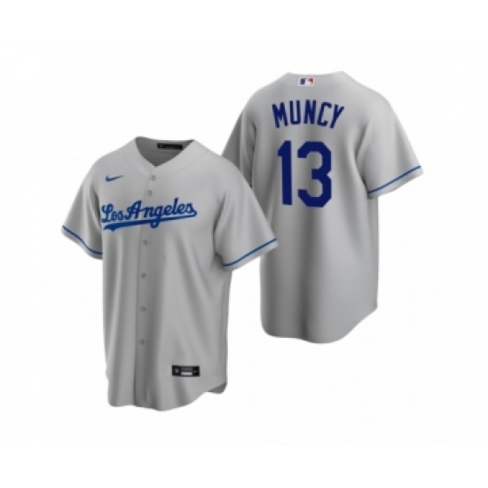 >Men's Los Angeles Dodgers #13 Max Muncy Nike Gray Replica Road Jersey