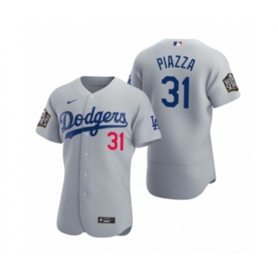 Men's Los Angeles Dodgers #31 Mike Piazza Nike Gray 2020 World Series Authentic Jersey