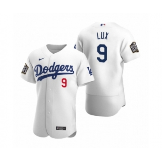 >Men's Los Angeles Dodgers #9 Gavin Lux Nike White 2020 World Series Authentic Jersey