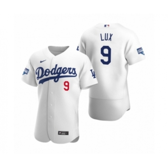 Men's Los Angeles Dodgers #9 Gavin Lux White 2020 World Series Champions Authentic Jersey
